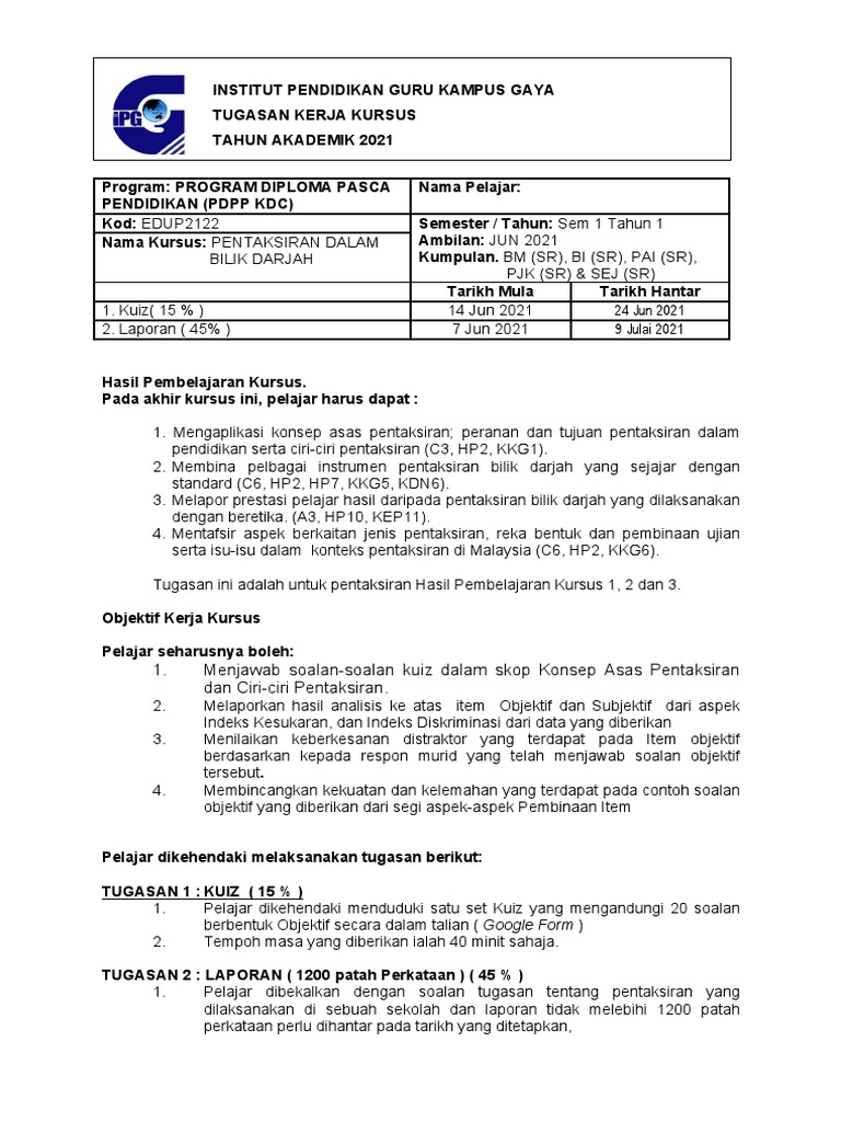Tugasan 3 Portfolio Laporan Kerja Kursus Pdf